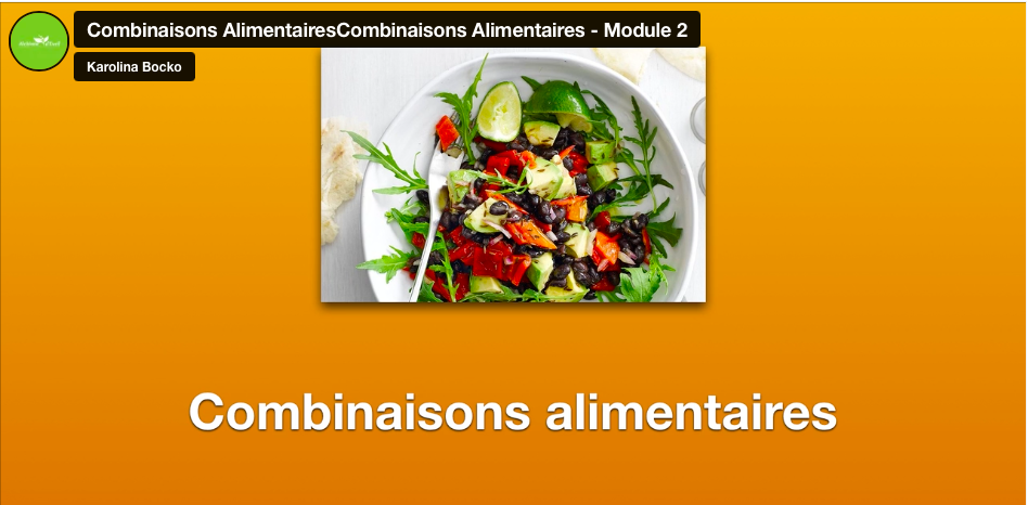 Les combinaisons alimentaires - c'est un concept très interessant car il aide à avoir une meilleure assimilation et peut résoudre les soucis de digestion de beaucoup de personnes. Il n'est pas nécessaire de suivre les combinaisons à la lettre, c'est un outil, pas une obligation. Dans ce cours vous allez apprendre la théorie mais aussi suivre plein d'exemples pour savoir comment composer vos repas correctement dans votre quotidien.